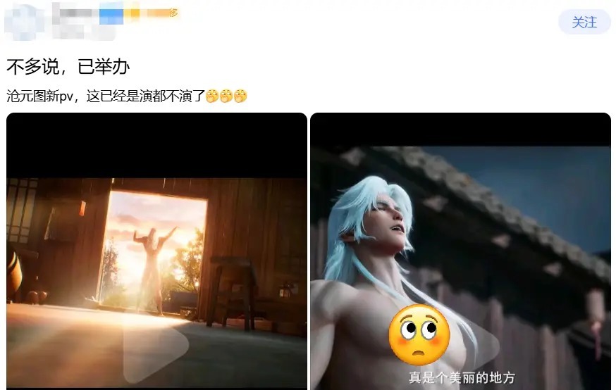 有人可能会说,“不过是一个PV镜头,人家本来就是妖,没必要上纲上线”,也有人觉得“动漫里裸露镜头常见,没必要小题大做”。我认为,《沧元图》主打的是热血国风,讲的是人族反攻妖族、孟川肩负重任守护众生的故事,这种家国情怀、热血成长的作品,过度打男角色擦边球,反而会偏离作品本身调性,显得本末倒置。